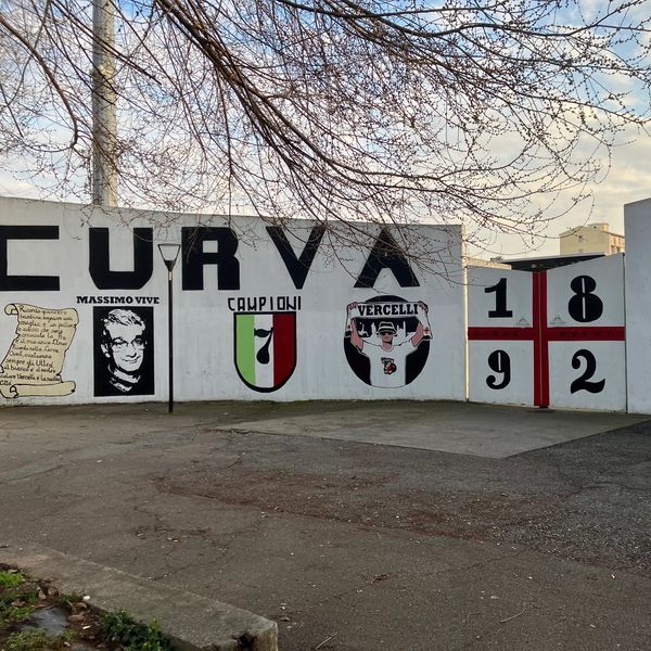 If you want to take in a piece of Italian football history and happen to find yourself in Milan or Turin, then you could make the short 45 minute trip to Vercelli , home of Pro Vercelli 1892. Pro Vercelli are 7 time winners of the top division title and sit 7th in the all time winners list, still ahead of the likes of Roma, Napoli and Lazio. All those titles came over a century ago but they are still proud of the fact with several nods to past successes dotted around the ground. Stadio Silvio Pioli is named after their former player, World Cup winner and Serie A all time goalscorer. The stadium is a 10 min direct walk from Vercelli station or 20 minute meander through the town, which was pretty deserted for this Saturday afternoon game.